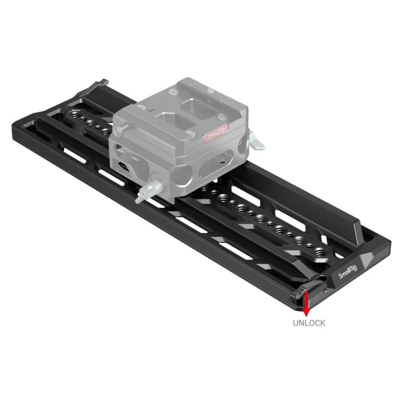 SmallRig 12'' ARRI Dovetail Plate 3772 supports ARRI standard dovetail baseplate, such as SmallRig Baseplate 3067, 1642, and O'Connor fluid-head, like O'Connor 2060, O'Connor 2575, O'Connor 120EX, Sachtler Cine 30. It features a lightweight cutout design while maintaining its strength. The plate comes with multiple 1/4"-20 & 3/8''-16 threaded holes for attaching other tripods and an anti-off button on each end to enable quick and secure installation while removing of camera.