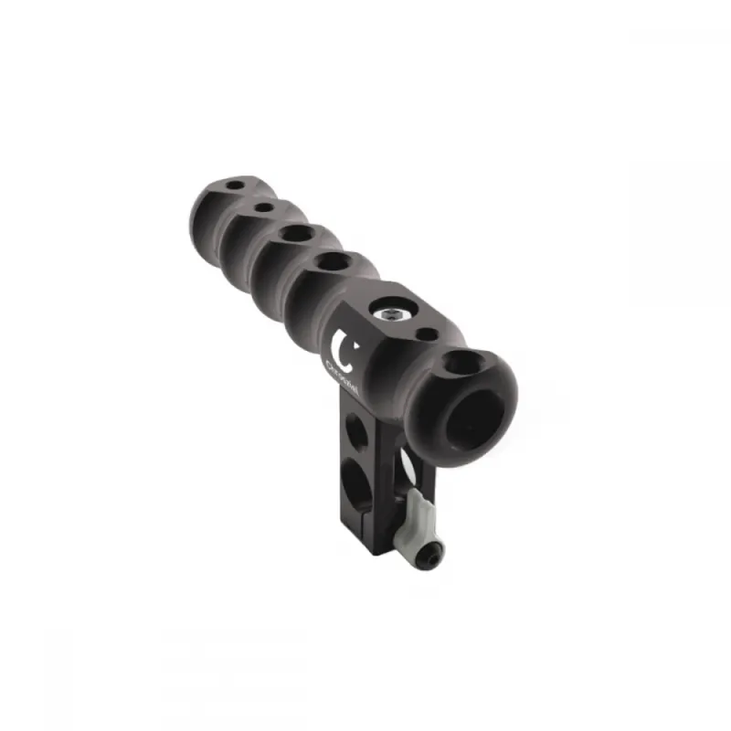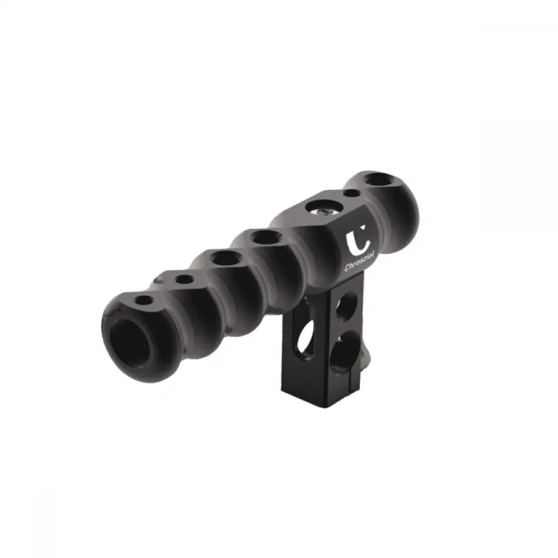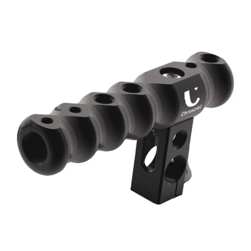 Handle for Chrosziel Cage Systems (e.g. 700-GH5), with 3/8"+1/4" threads, easily mounts on top or on the side of the Cage Frame. Optional use on dia. 15mm rods.