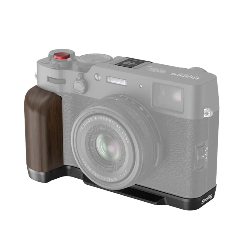The SmallRig Wooden L Shape Grip for FUJIFILM X100VI / X100V (Black) 4805 is designed to enhance camera grip. The L-shaped grip attaches to the camera with a 1/4-20 screw at the bottom, and built-in silicone pads prevent scratches. The handle is made of natural solid wood, offering an elegant look with a rich, natural feel, and is ergonomically designed to improve grip comfort.