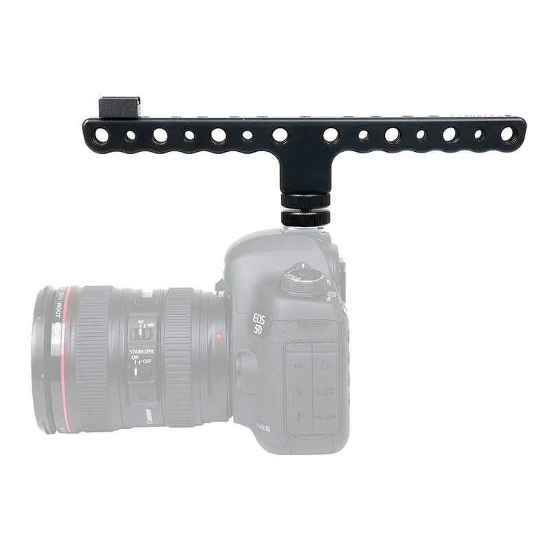 The Caruba Camera Handle Double is a lightweight handle that can be attached to the hot shoe connection of your camera. The handle is fitted with various 1/4 and 3/8 screw holes and an extra removable coldshoe connection for attaching accessories such as an external monitor or an LED lamp. This handy handle gives you a better grip when filming when you walk or want to film from a low position. ,