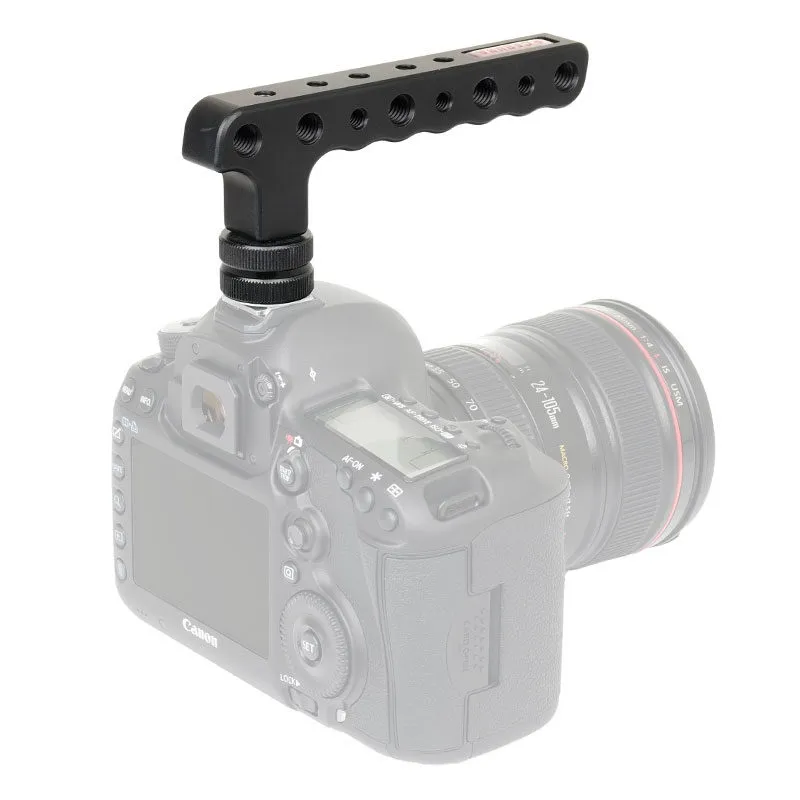 The Caruba Camera Handle Single is a lightweight handle that can be attached to the hot shoe connection of your camera. The handle is provided with several 1/4 and 3/8 screw holes for attaching accessories such as an external monitor or an LED lamp. This handy handle gives you a better grip when filming when you walk or want to film from a low position. ,