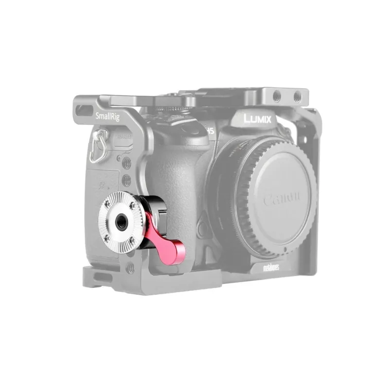 SmallRig NATO Clamp to Arri Rosette 2046 comes with a NATO clamp and an Arri rosette. NATO clamp is compatible with NATO rail for convenient attachment and detachment, and it could be locked tight via a locking lever. M6 threaded holes could be mounted on rosette with M6 screw. The Arri rosette could be mounted on Wooden Handle 1891/1941 and then attach on the NATO rail of Cage 2049/1889 for quick release. It features its strong compatibility and is applicable in many scenarios. It could attach NATO Rail 1409 on the cage via NATO clamp on the one end and attach Rosette Handle 1810 via the rosette on the other end for handheld shooting. It could attach NATO rail on the side of the cage on the one end and attach Wooden Handle 1941 for handheld shooting on the other end. It could attach NATO rail on the side of the cage on the one end and attach NATO Rail with ARRI Rosette 1884 and then EVF support for a monitor.