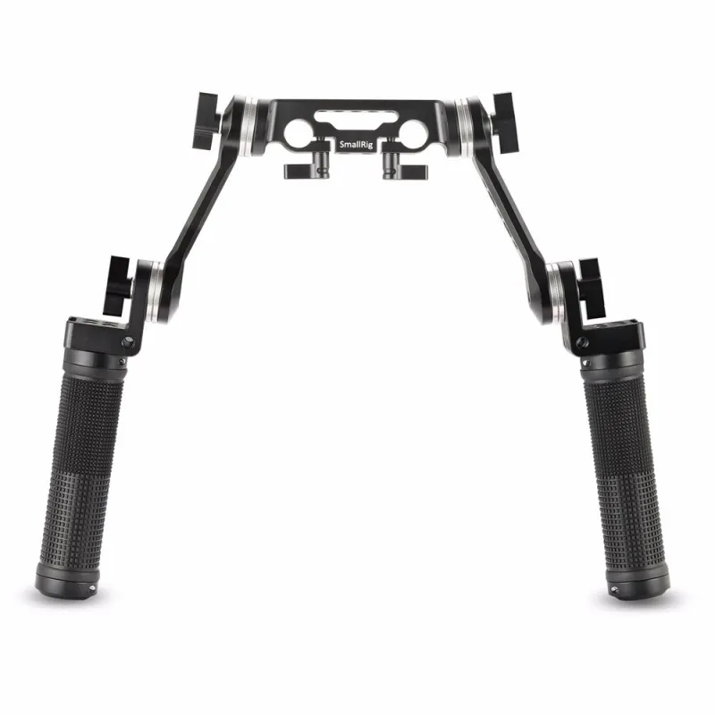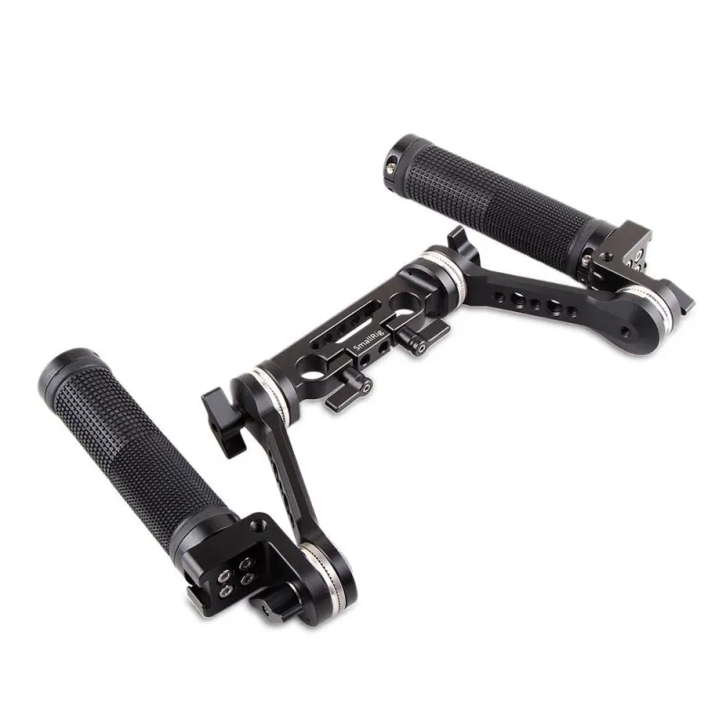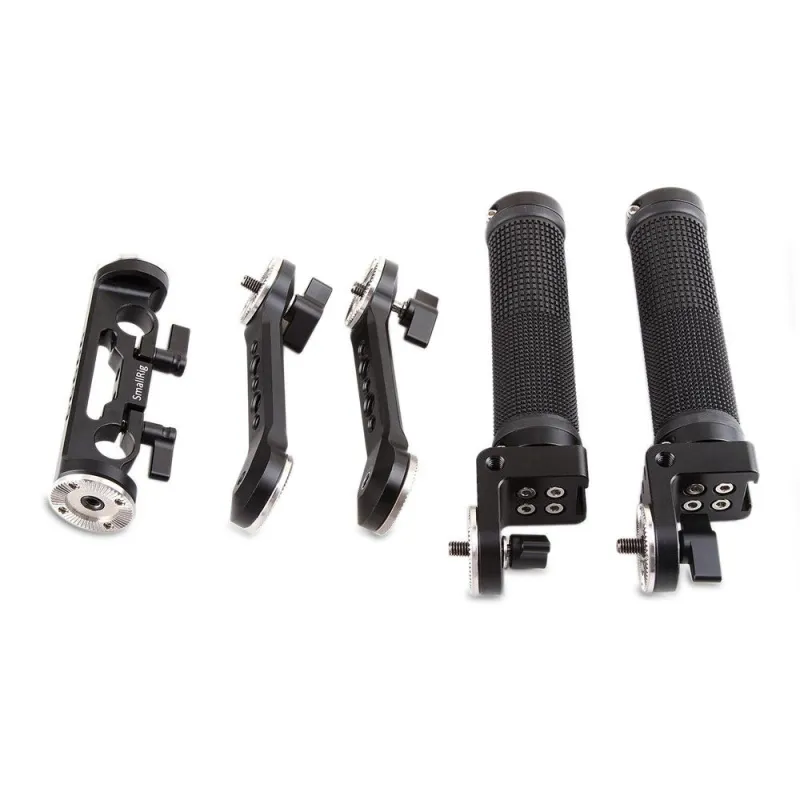 SmallRig Rosette Handle Kit (Cheese Short Arm) 2002 attaches 15mm rods for shoulder mount shooting. The kit comes with independent anti-slip handles utilizing SmallRig rosettes. Each arm is equipped with an array of threaded holes. Put the handgrips in front of your body for better camera control. Threaded holes on arms are for attaching accessories. Four main pivoting points can rotate 360°that are controlled separately by black tension levers. This offers you unlimited position options. The quick release clamp saves your time on operation when attaching rods, just by tightening the black lever on the bottom. It is ideal for quick, lightweight, shoulder-mounted configurations.