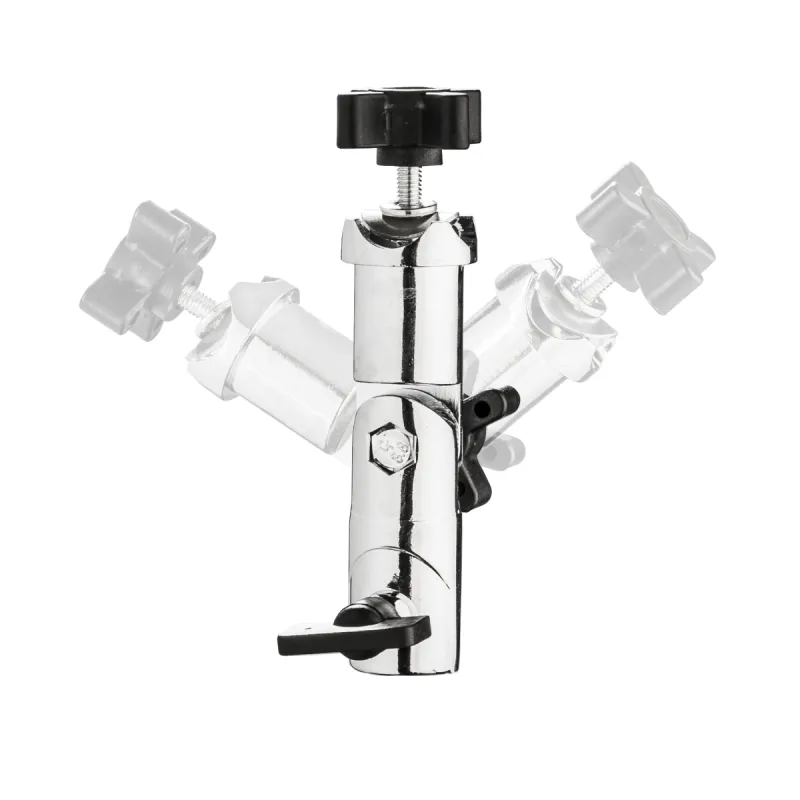 Articulated panhead for flexible assembly The flexible articulated panhead (rotatable through 180°) is also light and sturdy, and combines the frame to the extendable monopod. The articulated panhead itself is fitted with a double spigot to the monopod. You can also mount the frame and articulated panhead on a lamp tripod because the double spigot can be removed. You ll be able to do without an assistant in the future.