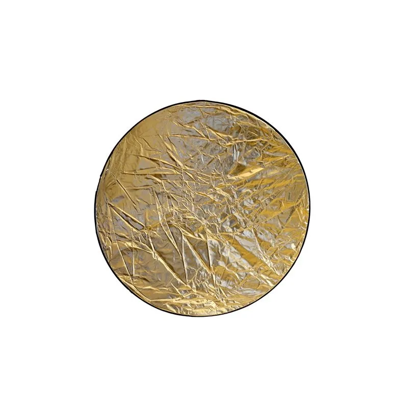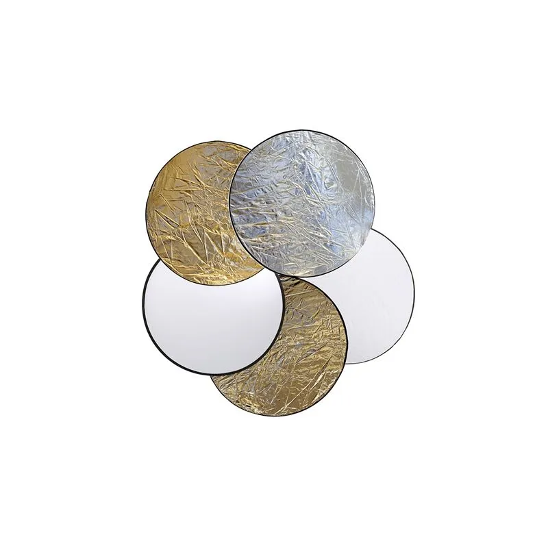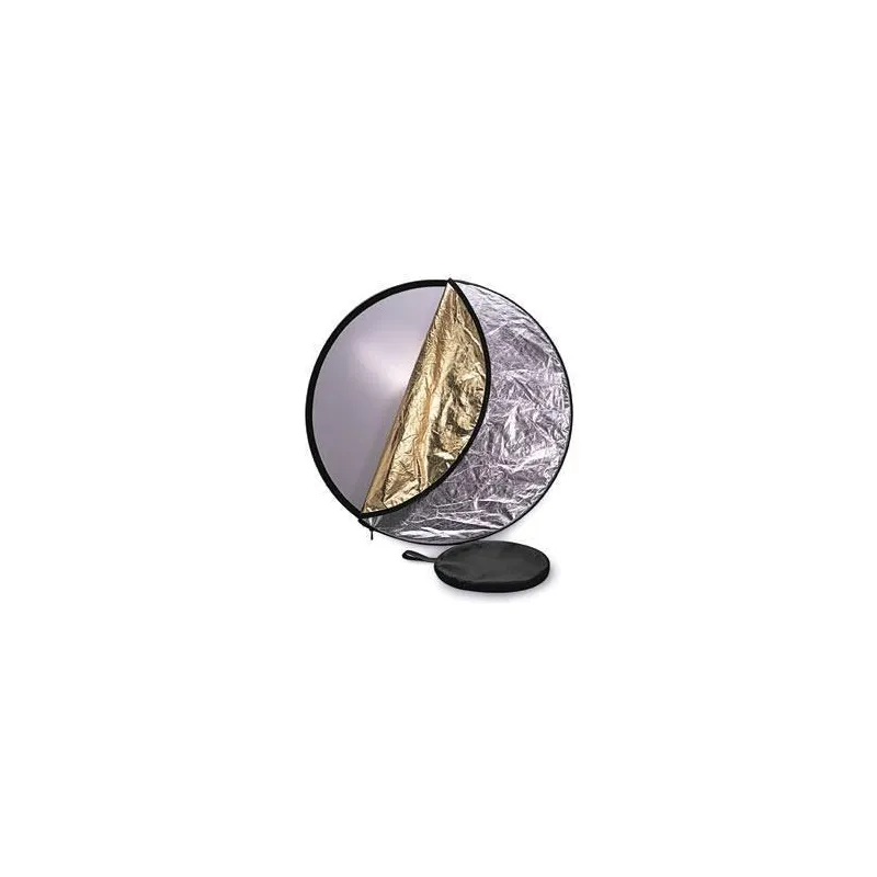 The Falcon Eyes CRK-42 SLG 5 in 1 Reflector is a standard diffuse reflector supplied with a removable cover. This removable, zip up cover is reversible and equipped with 4 different colours: white, gold, silver and sunny gold. The reflector has a diameter of 107cm and can be folded and packed away in the supplied carry bag.