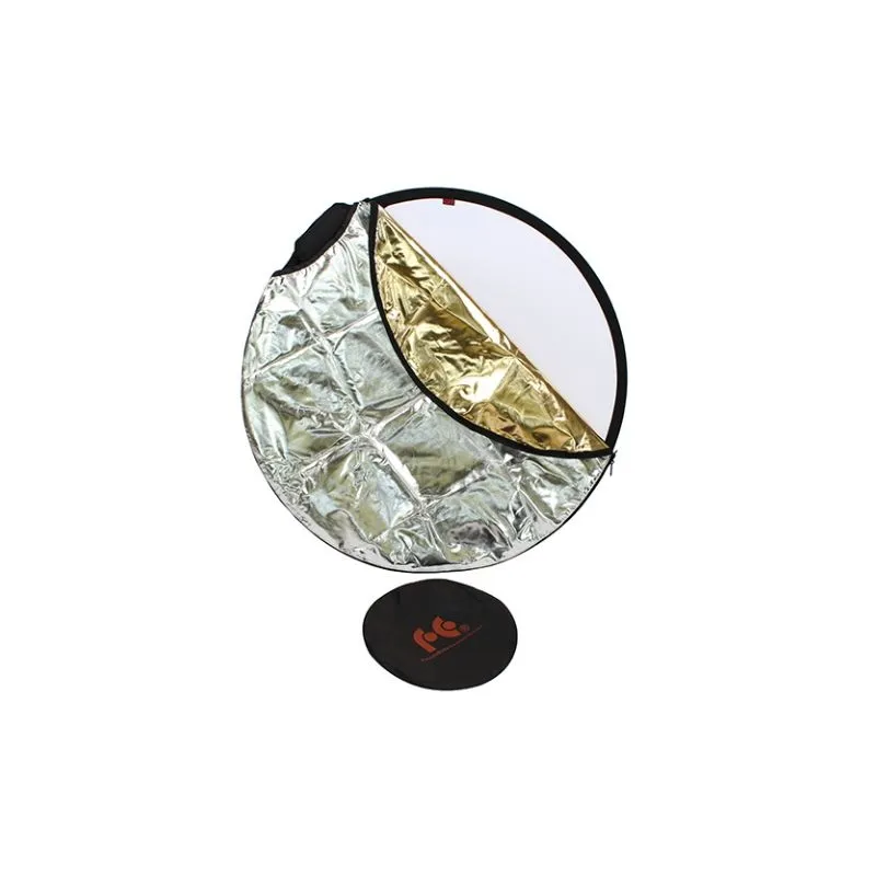 The Falcon Eyes RFEG-32SLG 5 in 1 Reflector is a standard diffuse reflector equipped with a handgrip. The RFEG-32SLG is equipped with a removable, zip up cover, which is reversible and contains a different colour on each side (gold, silver, white, sunny gold). The handgrip enables you to maintain an accurate position of the reflector with one hand.