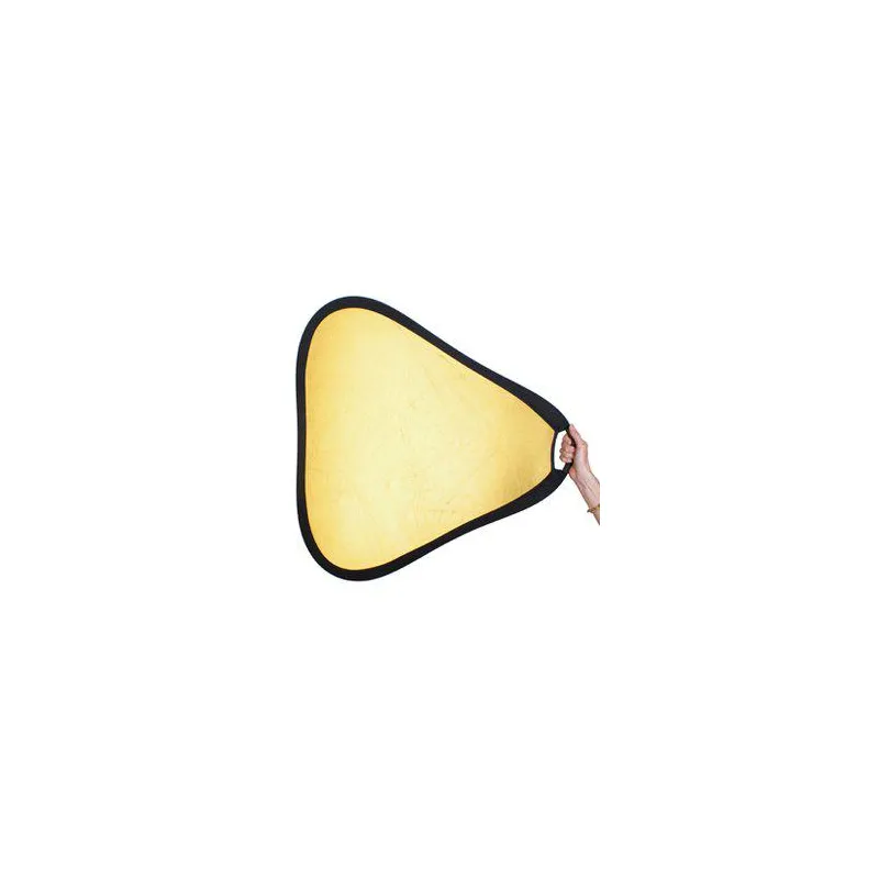 The StudioKing CRGGS60 Gold/Silver Grip Reflector is equipped with a molded handle and a securing strap. These features enable you to maintain an accurate position of the reflector with one hand.