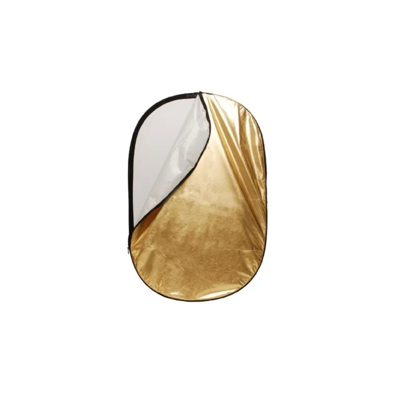 The Linkstar Reflector 2 in 1 is a foldable oval Reflector with two sides. On one side you ll find a golden reflector and on the other side you ll find the silver reflector. Each side has its own effect.