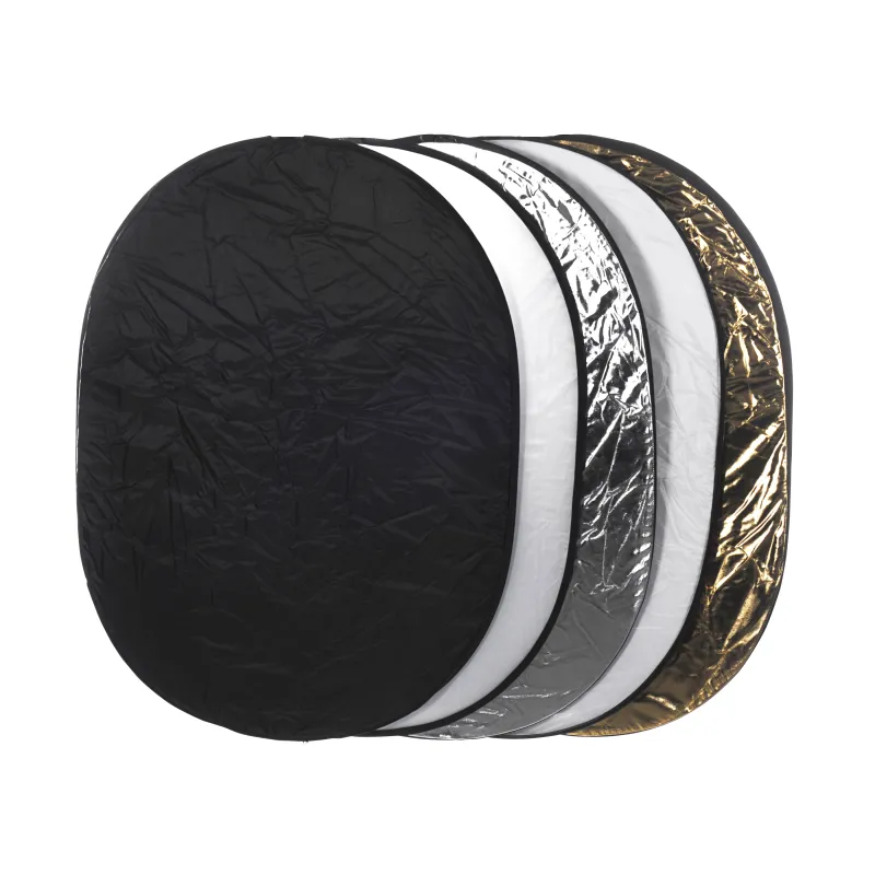 The TR-1 5 in 1 collapsible reflector consists of a flexible frame covered with a white diffuse cloth . The diffuser can be transformed into a versatile reflector by means of a removable and reversible slipcover with different reflective foils ( black, gold, silver and white ) on its four sides. It will allow you to create beautiful and creative effects on your pictures.