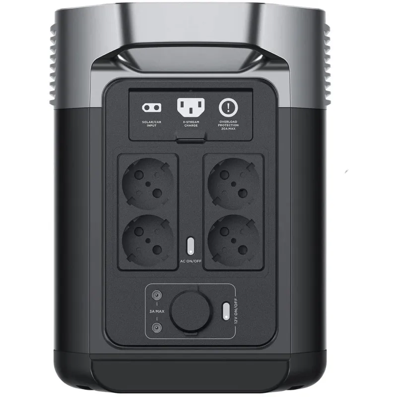 The DELTA 2 charging station can be charged in different ways, the fastest way is via the 1200 W AC input. EcoFlow's patented X-Stream technology allows DELTA 2 to be fully charged in 80 minutes, 80% of which in 50 minutes. Faster charging means less downtime and more uptime. When on the road, it is convenient to fully charge the DELTA Max charging station from the cigarette lighter in the car (12 / 24 V 8 A input).