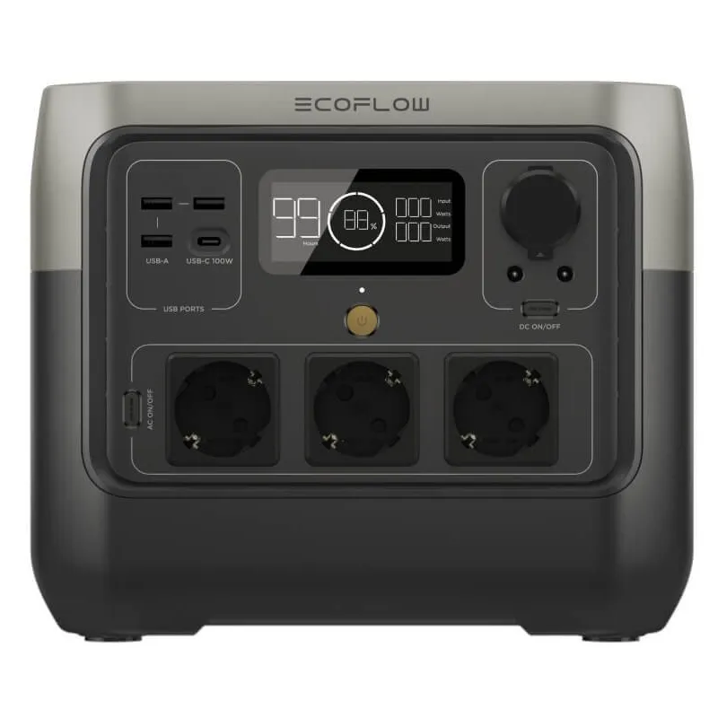 Charging from 0 to 80% in one hour and in the carThe RIVER 2 Pro charging station can be charged in various ways, the fastest being from an AC outlet via a mains adapter within 70 minutes. It is 5 times faster than other portable power plants on the market and 27% faster than previous generations. EcoFlows patented X-Stream technology allows RIVER 2 Pro to be fully charged in 70 minutes, 80% of which in 1 hour. Faster charging means less downtime and more uptime. When on the road, it is convenient to charge the RIVER 2 Pro charging station from the cigarette lighter in the car (12 / 24 V 8 A input). The RIVER 2 Pro charging station has a completely new charging option - USB-C.