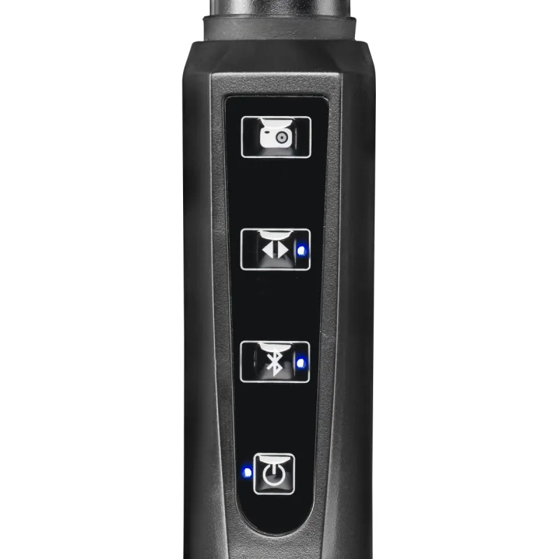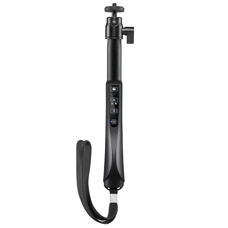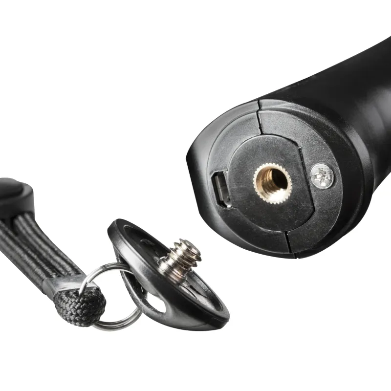 The remote trigger pairs simply with the smartphone via Bluetooth. It is equally suited for iOS and Android. It is ready for use in just a few seconds. The hand pod has an inbuilt battery that can be charged with a micro-USB connector. The selfie stick also has a ј inch thread on the underside and can therefore be attached to a tripod or used with other accessories.