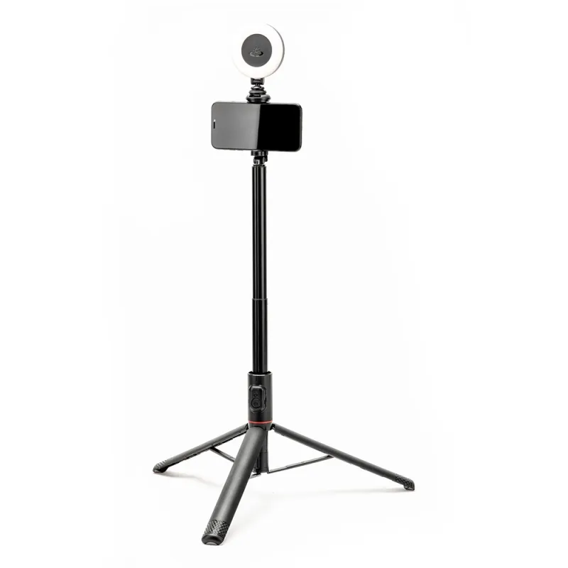 The Fotopro TL 802 Smartphone Selfie Tripod is a multifunctional selfie tripod that combines a mini tripod and selfie stick in one. It is perfect for capturing photos and videos with your smartphone while traveling, at parties, and concerts. You can also use it as a table tripod for video conferences and vlogs. The telescopic arm allows for quick height adjustments.