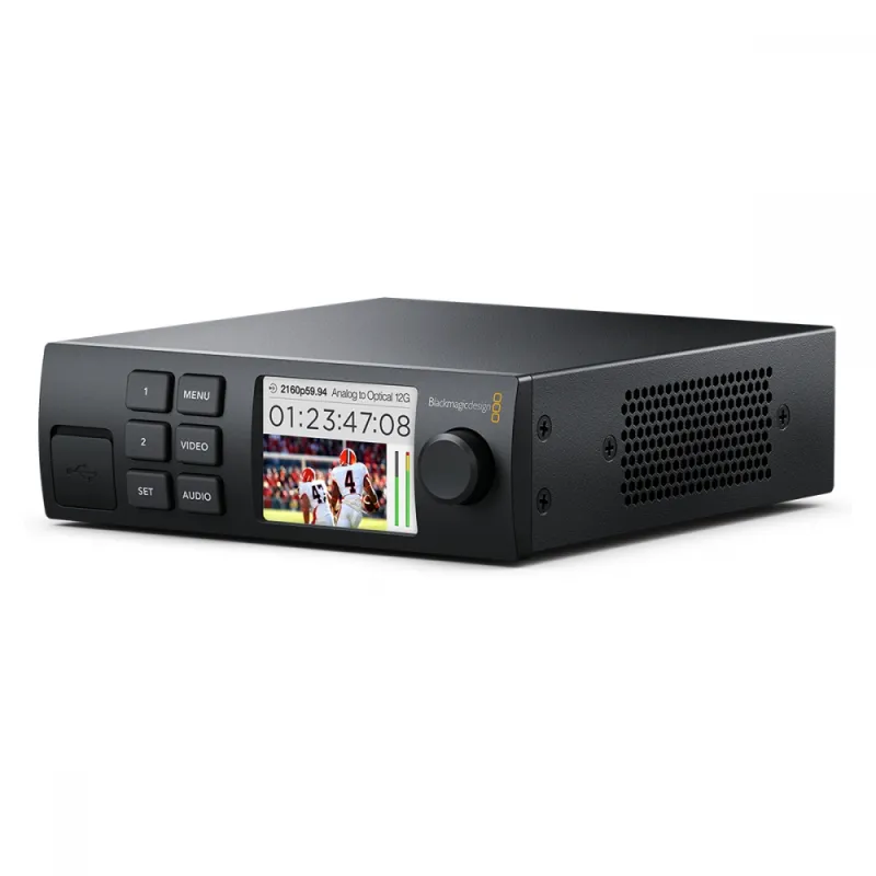 The Teranex Mini’s optional premium front panel includes straight forward push buttons and a built in LCD screen for easier set up. The LCD screen also displays the video going through each of your converters! The premium front panel is perfect when you’re out in the field or on set without external monitors, or even when you have multiple converters mounted in equipment racks and just want to see what’s going through them all!