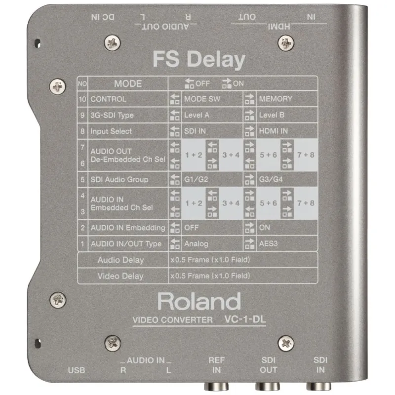 In live production as you add more video components to a signal flow, latency is introduced. The VC-1-DL converter not only allows bidirectional conversion of SDI/HDMI but it also provides frame sync and delay adjustment of up to 9 fields (4.5 frames) for audio and video independently. This is helpful when keeping various types of cameras in sync as well as ensuring a projector stays in sync with an LED wall. In this way it is an indispensable tool live production, broadcast and recording applications.
