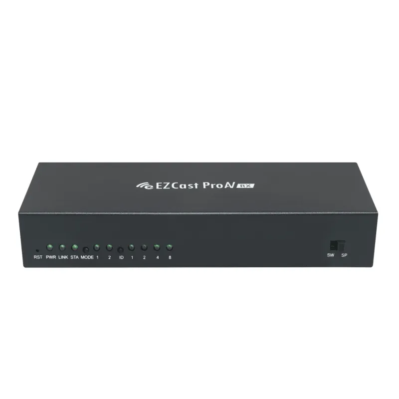 The NimbleTech EZCast ProAV over Ethernet Receiver provides low-latency Full HD video and audio transmission over a Gigabit Ethernet network. It supports KVM mode, one-to-many splitter mode, and matrix switching, making it ideal for professional AV applications.