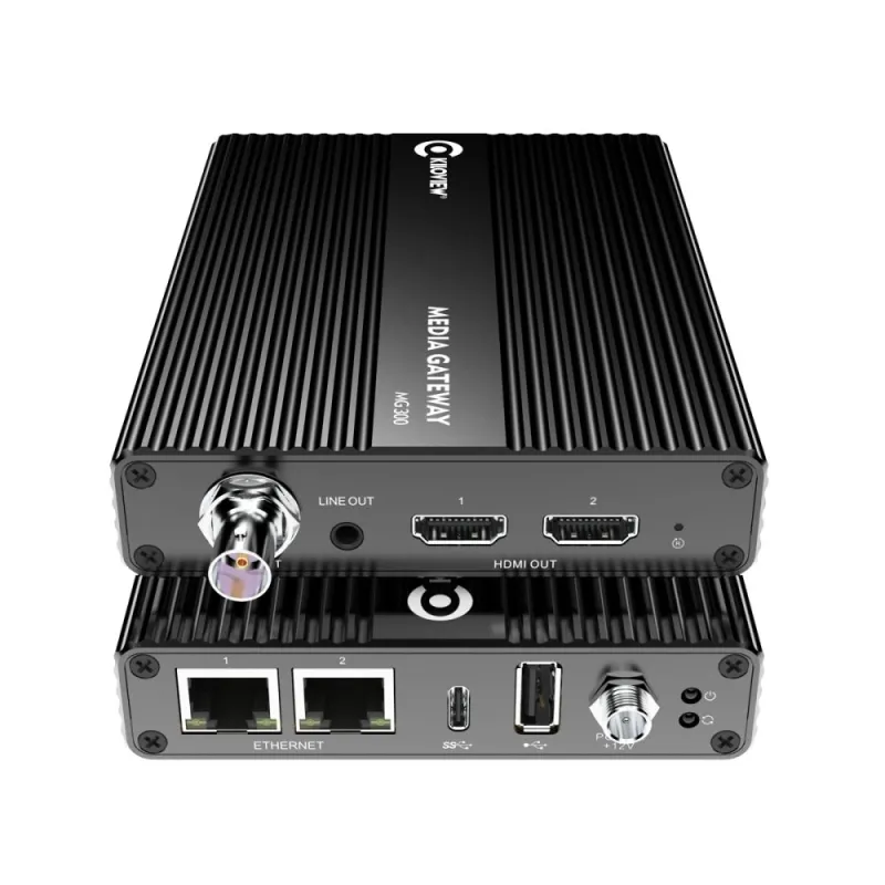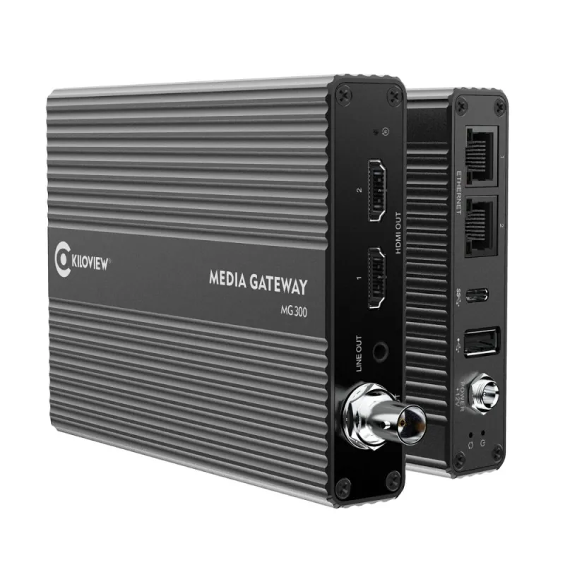 Kiloview MG300 V2 media gateway is a high-performance embedded multi-functional device. It integrates functions such as multi-channel video decoding between NDI|HX, SRT, RTMP, RTSP, TS-UDP, and HLS to SDI and HDMI. It can do so with the same or different content, multi-view output and streaming, video image segmentation, protocol cross conversion, stream media and distribution services.