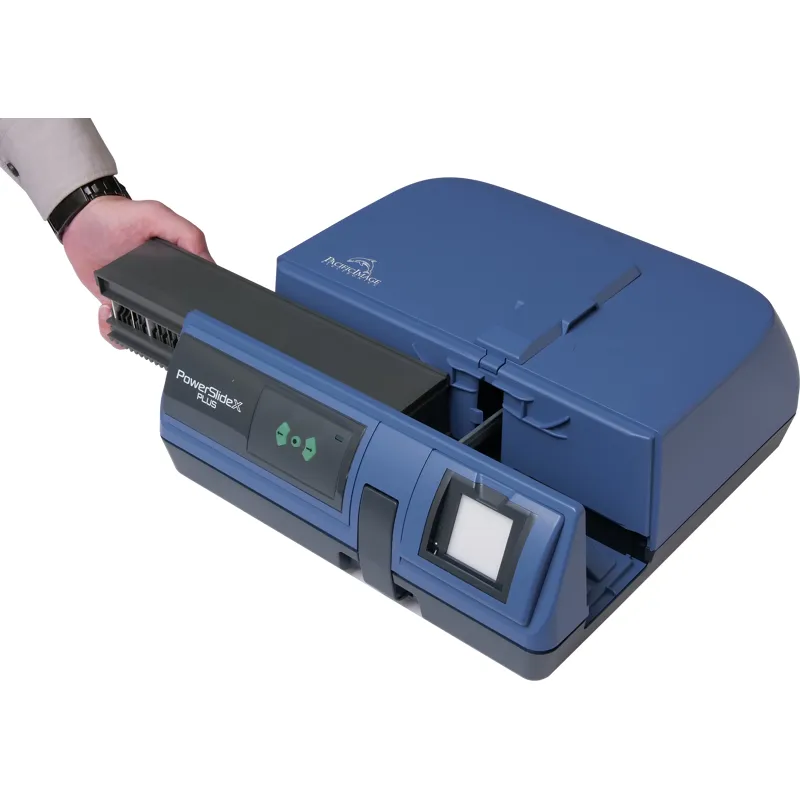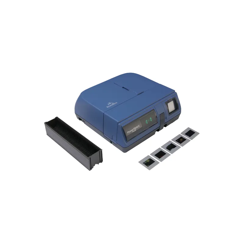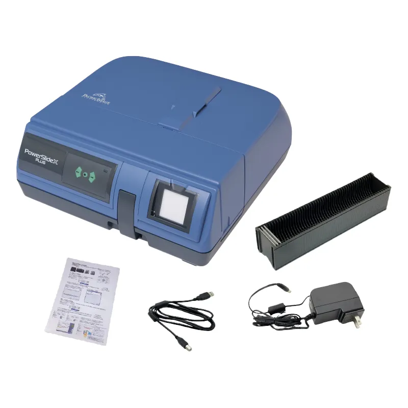 The PowerSlide X Plus includes a built-in mini light panel for users to conveniently preview slides before scanning. Users can also move the slide tray forward or backward using the navigation buttons on the front control panel.