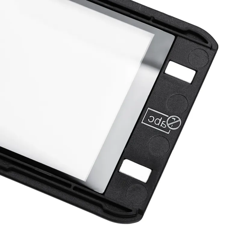 Made of high quality and eco friendly ABS plastic, this film holder is sturdy and offers years of reliable use. The holder has a transparent mask film and can significantly flatten the film surface, effectively reducing the appearance of moiré patterns.