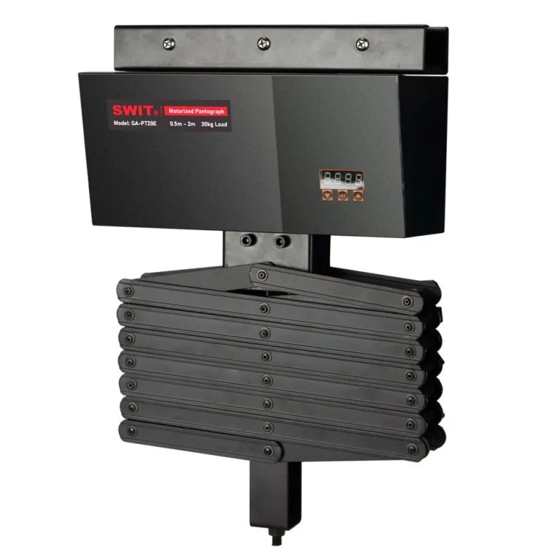 GA-PT20E pantografas yra viršutinė atramos sistema, skirta profesionalioms vaizdo studijoms, leidžianti DMX motorizuotą kontrolę studijos šviestuvams su 10cm/s greičiu. Jis turi reguliuojamą aukščio diapazoną nuo 0.5m iki 2m ir palaiko maksimalų svorį 30kg.
