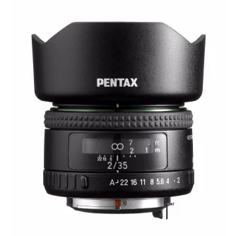The Pentax smc FA 35mm f/2.0 AL is a semiwideangle lens with much of the normal lens perspective but a larger viewing angle. This lens has internal floating elements for optimal results throughout the focus range. Bright, light and sharp.