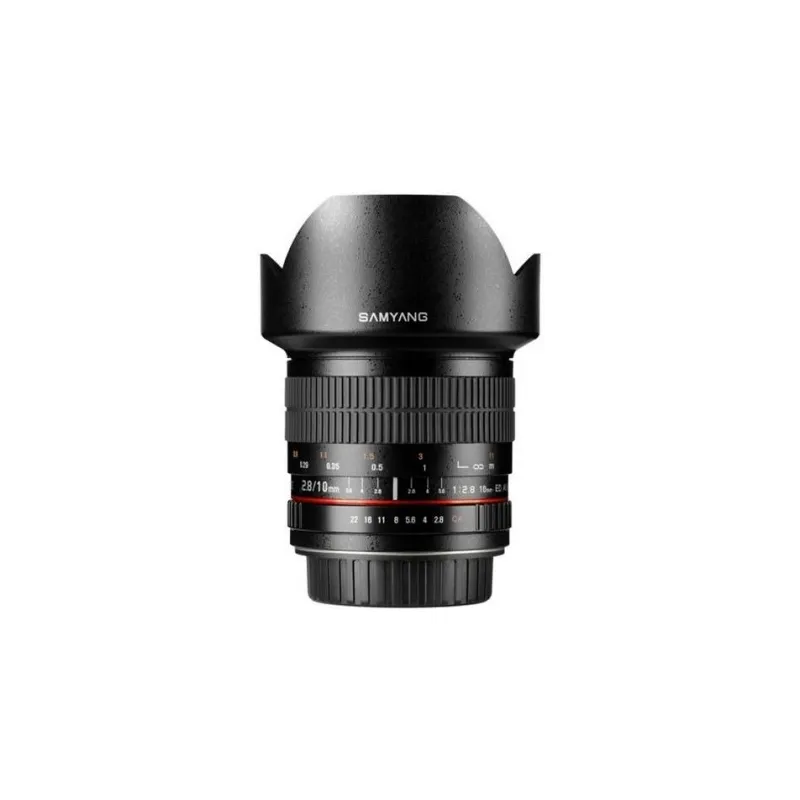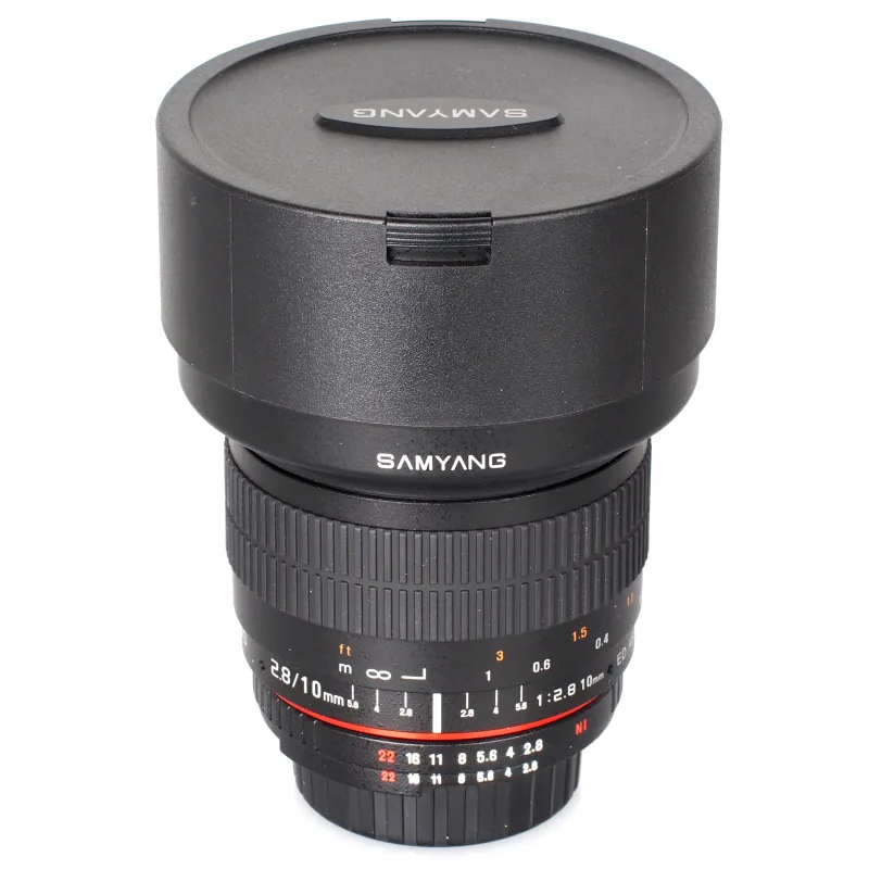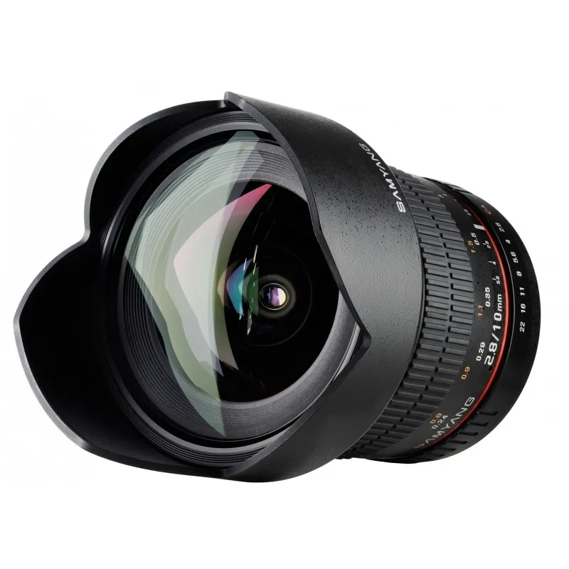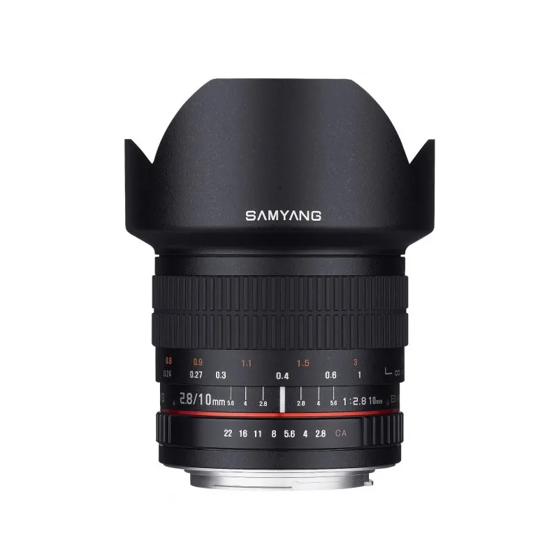 Samyang 10mm 1:2.8 ED AS NCS CS is an ideal tool for indoor, architecture and landscape shooting. It provides an exceptionally wide field of view of up to 109.5 degrees and rectilinear image mapping function. Owing to a fast f/2.8 lens speed you can also use the lens in low light conditions. This is why it turns out a useful tool for sport photography and photojournalism purposes. The product's optics comprises 14 elements divided into 10 groups, this includes 2 aspherical AS lenses and one lens made of extra-low dispersion glass. During development works on the prototype version the lens was fitted with an embedded lens hood which ensures more compact size of the lens and reduces its weight by approximately 160 grams*. * - applicable to a version with Canon E mount