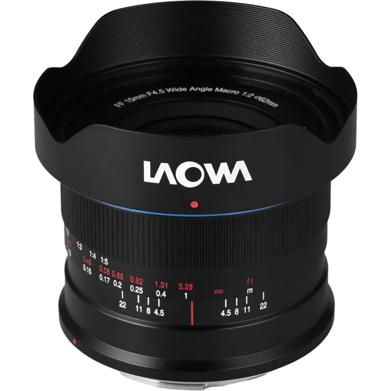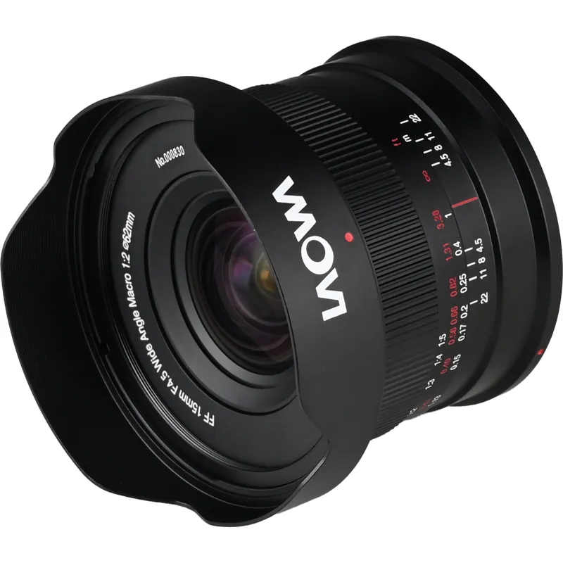 The Laowa 15 mm lens offers an ultra-wide perspective of 110.5 degrees, making it perfect for landscapes, architecture, and macro photography with a 0.5x magnification capability. This allows photographers to create captivating images by combining foreground subjects with expansive background details.
