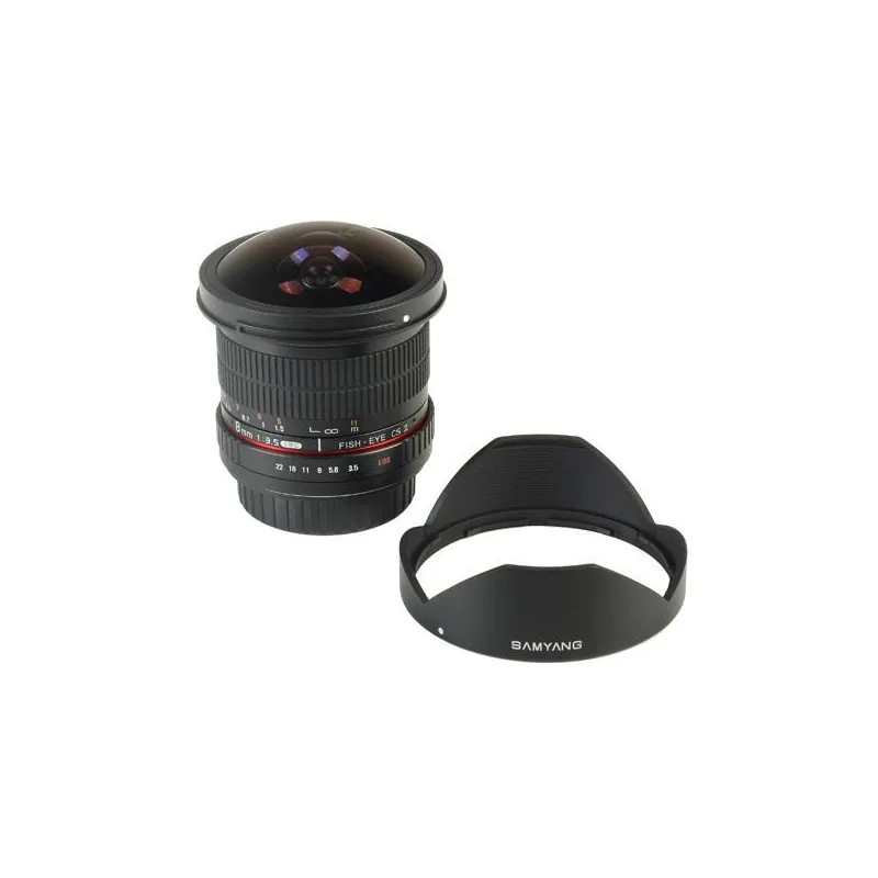 On Full frame cameras, it produces a vignetted image, which is almost circular with the lens hood detached. This effect is required for user wanting the biggest image / field of view for panoramic software on full frame cameras, and one of the reasons Samyang produced this removable lens hood version. The Samyang 8 mm Fish-eye lens is ideal for creating panoramas and 360 virtual tours, including full 360 degree images with the correct hardware and various 3rd party panoramic software supplied by other vendors.