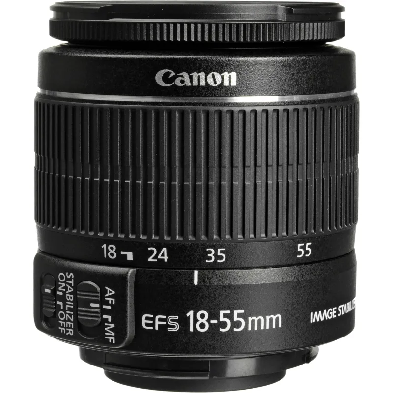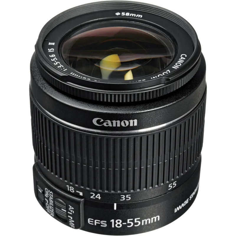 Compact, lightweight, and versatile, the EF-S 18-55mm f/3.5-5.6 IS II from Canon is a standard zoom offering a 28.8-88mm equivalent focal length range. One aspherical element is featured in the lens design and helps to control spherical aberrations and distortion throughout the zoom range for consistent sharpness and clarity. A Super Spectra coating has also been applied to individual elements to control flare and ghosting for increased contrast and color accuracy in all lighting conditions. Complementing the imaging capabilities is a four-stop-effective Image Stabilizer system that minimizes the appearance of camera shake for sharper handheld shooting. Additionally, a Micro Motor autofocus system delivers quick focusing performance and a minimum focusing distance of 9.8" is available at all focal lengths for close-up shooting.