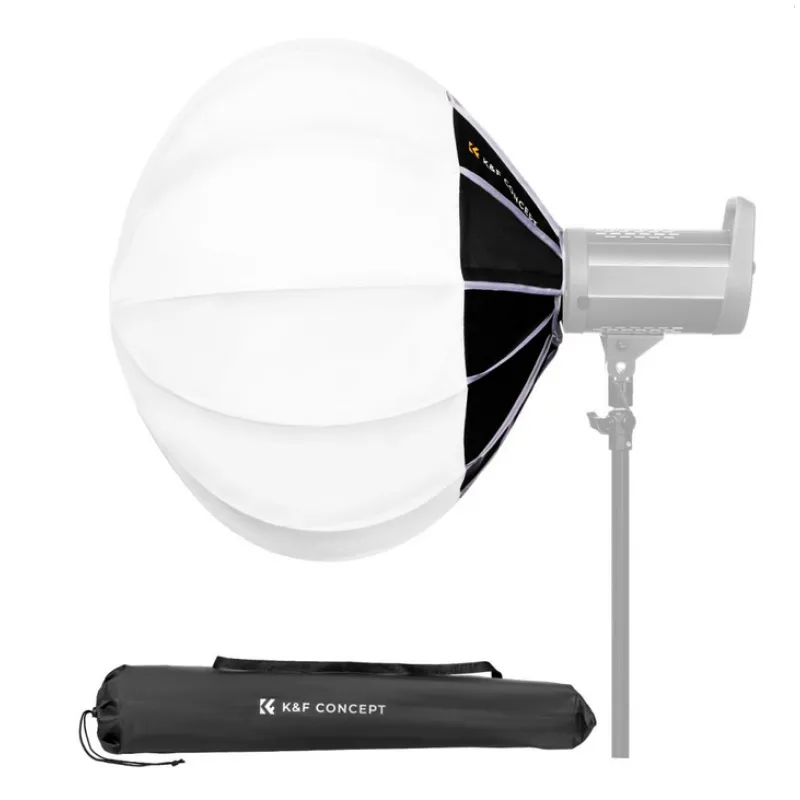 The K&F 85CM Lantern Soft Light Box is designed for photographers and filmmakers who need versatile and efficient lighting solutions. Its spherical design ensures 360-degree omnidirectional soft light, making it perfect for studio use by spreading light evenly with a 270-degree beam angle. This lantern softbox is ideal for creating soft, even lighting across a wide area with a single light source.