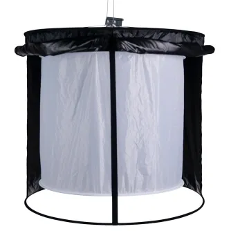 The Nova P600c Space Light is an omni-direction soft light diffuser for the RGBWW LED Panel. As a space light, it features a cylindrical design, which is achieved by mounting the light into a suspended frame. This allows the panel to spread light 360° over a wider area, reducing edge shadows,