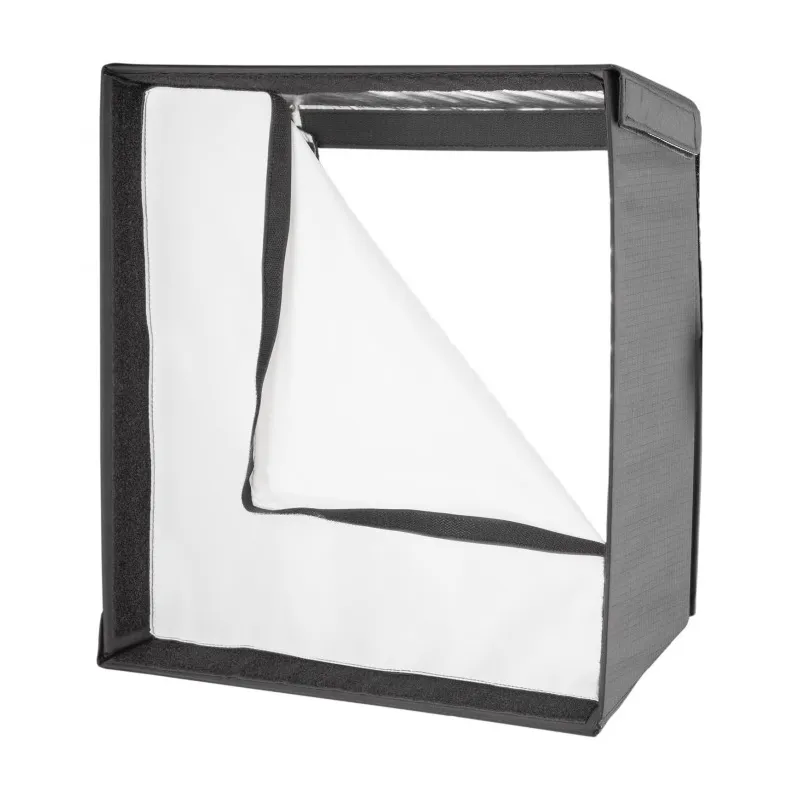 This light modifier is lined with a taut reflective silver interior to maximize light output. It features durable hook-and-loop strips inside the front of the softbox to securely attach the diffusion panel and optional 40-degree egg crate grid. The full-stop diffuser is designed with fabric that provides soft and color-accurate lighting.