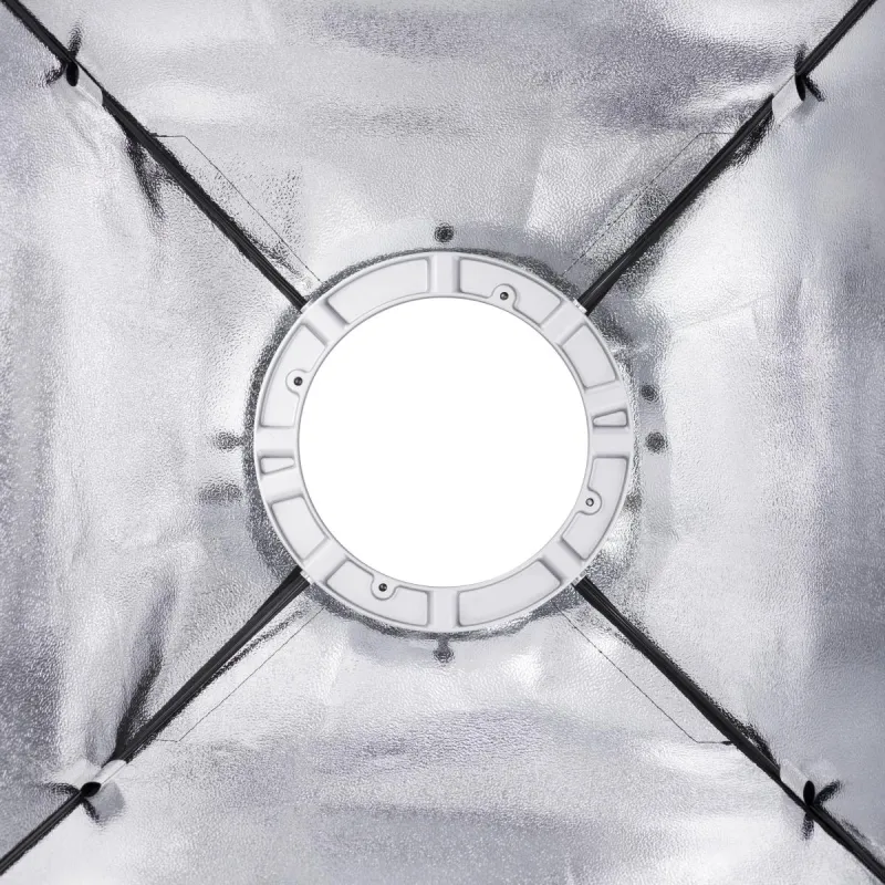The high-quality Softbox with 60x60cm is the ideal assistant for soft and even illumination. Whether people, beauty or product photography, whenever you want to achieve the most-possible glare-proof lighting, this Softbox is the right tool. Thanks to its innovative technique, it is easy to assemble in a few steps. Furthermore, the Softbox can be rotated around 360° with little effort. The rear diffuser, which is also included, can be used optionally as to make the light softer. The front and rear diffuser are easy to remove by means of Velcro fastener.
