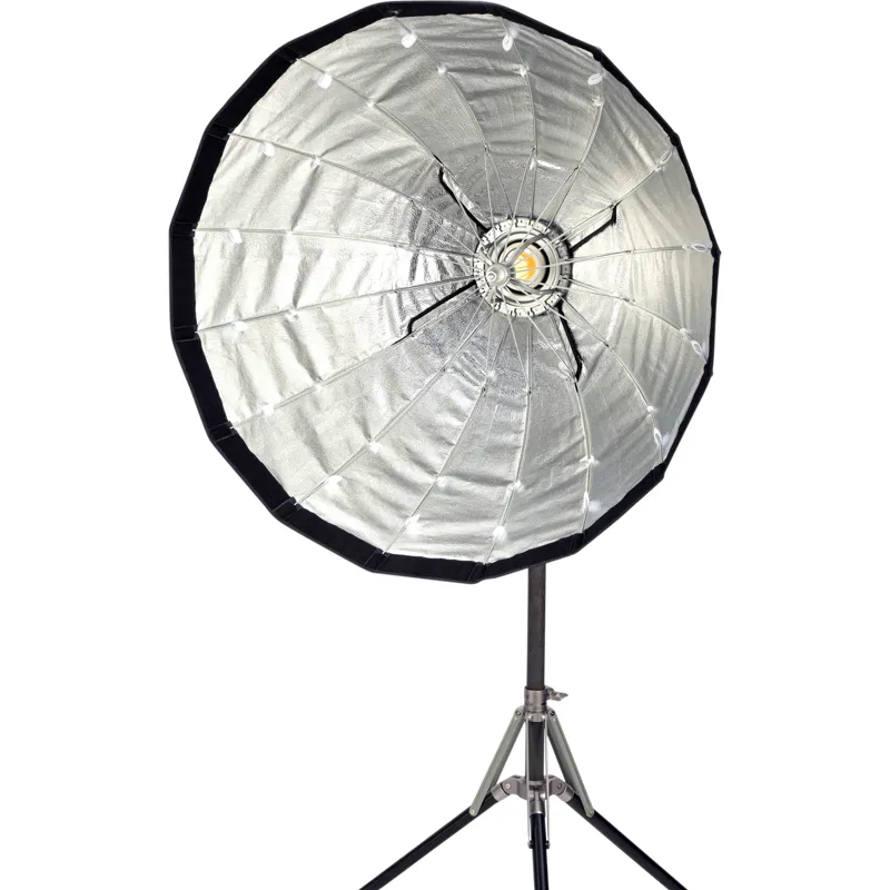 The Pro Softbox 90cm is specially designed to maximize the optics of the Pro and sets up in seconds with the easy umbrella lock interior. With a standard Bowens Mount, it includes a reflective interior for soft, neutral output and a removable front diffuser with an egg-crate attachment for a punchy, high-contrast look. It folds down quickly and stores in the dedicated gray canvas bag with a shoulder strap and handles for easy portability.
