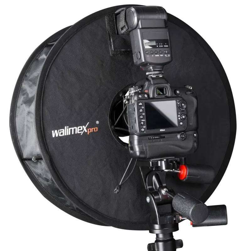 The perfect solution for portrait, product and macro shooting in the studio or on travels. A particularly simple folding mechanism and an extremely uniform illumination make the RoundLight Softbox from walimex pro the ideal Softbox with exactly circular illumination.