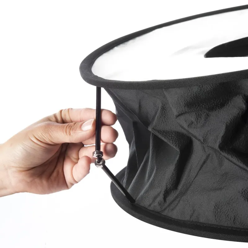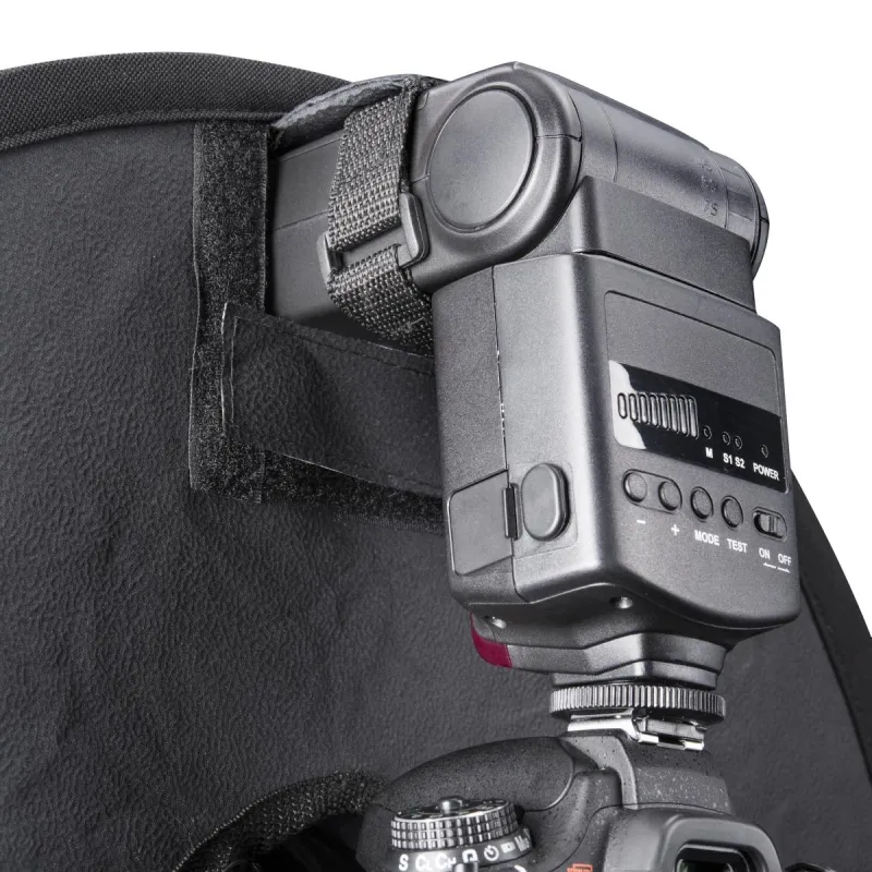 With its low weight and a professional folding mechanism the RoundLight Softbox is assembled and ready for use within just a few seconds. This makes the Softbox well suitable for use in studio as well as for outdoor shootings. Due to its light weight the RoundLight Softbox does not apply any load to your camera or your shoe mount flash.
