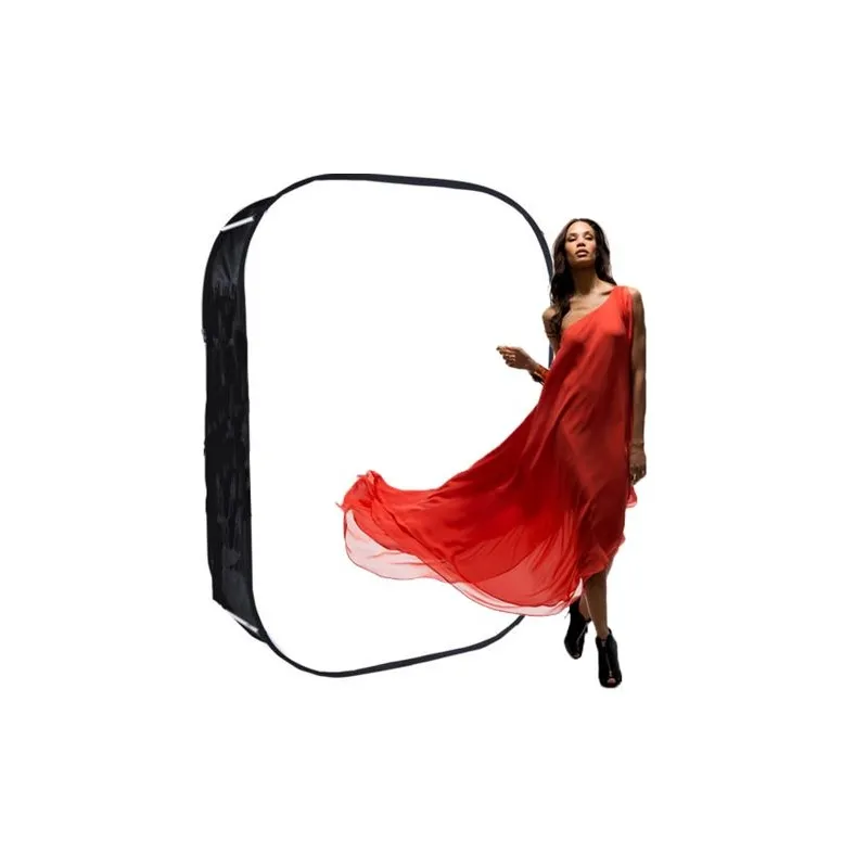The StudioKing BGS200 Softwall Softbox is 200 x 240 cm in size and is ideal for portrait photography. The BGS200 consists of 2 background boards with a black cloth in between. Both the front and back background boards are equipped with a diffuse cloth. When folded, the BGS200 has a diameter of 90 cm, making it compact and easy to carry to and from location.