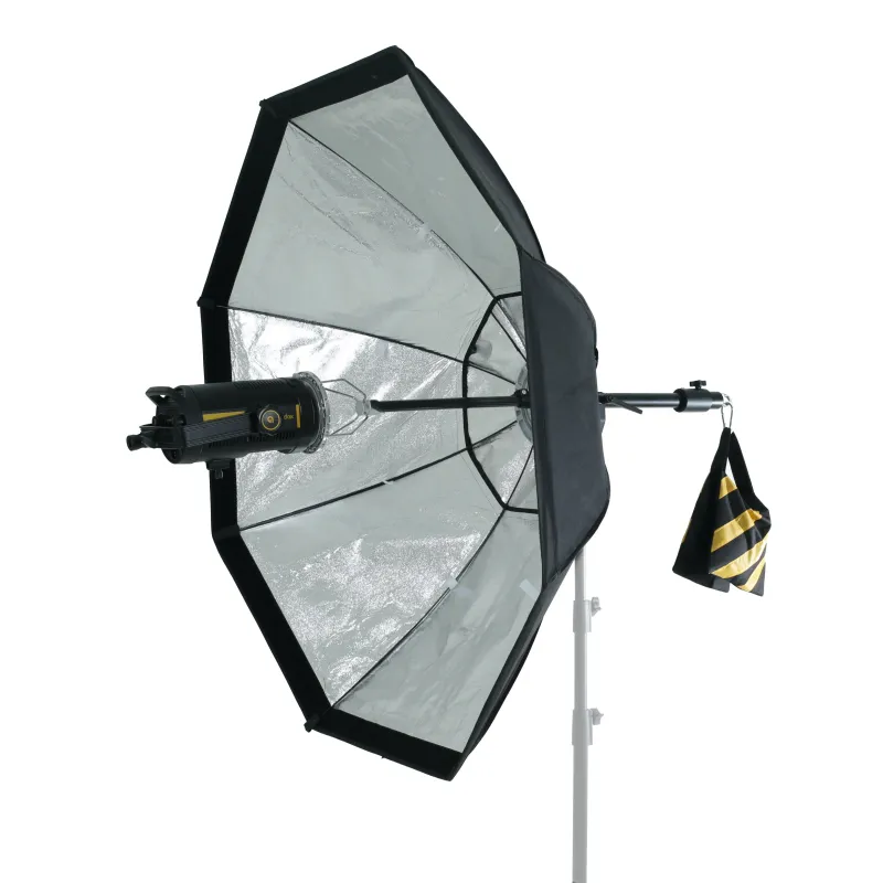 The Caruba Zoom Bounce System is suitable for use on location and in the studio. The distance between the mount of the lamp and the mount of the modifier is adjustable from 30 up to 105 centimetres. The total length is adjustable from 66 up to 80 centimetres.