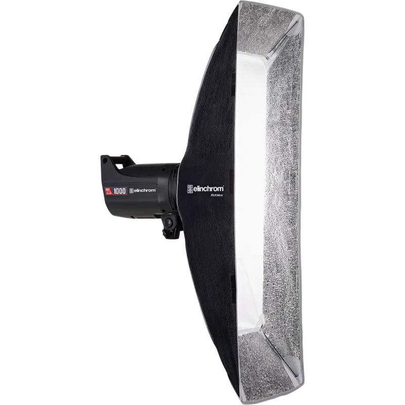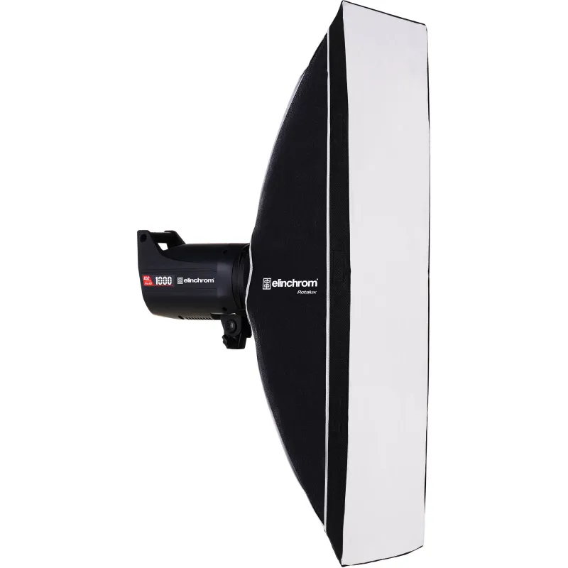 With its unique long rectangular form factor, it's clear why the 14 x 35" Rotalux Stripbox from Elinchrom is a favorite of people, product, and fashion photographers. The shape is ideal for edge or side lighting a subject or product; using as a hairlight; or rendering long, elegant highlights on glassware and reflective objects. The softbox has an exterior white diffuser and an interior diffuser that can each be used alone for varying degrees of contrast, or removed for a punchy high contrast look. The Stripbox has a silver interior for maximum output and comes with a bag for storage and transport.