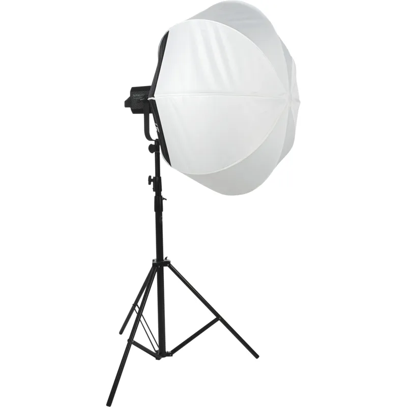 Ideal for hanging overhead on a boom, the 80cm Lantern Softbox from NanLite is a near omni-directional light source that spreads light over a 270° area to increase ambient light or to provide the type of overhead lighting you'd see at a table in a restaurant or club. The Lantern comes with a Bowens speed ring that besides NanLite, fits the many flash heads that use this popular mount. The Lantern comes with a two-piece skirt to allow blocking some of the pervasive light as needed.