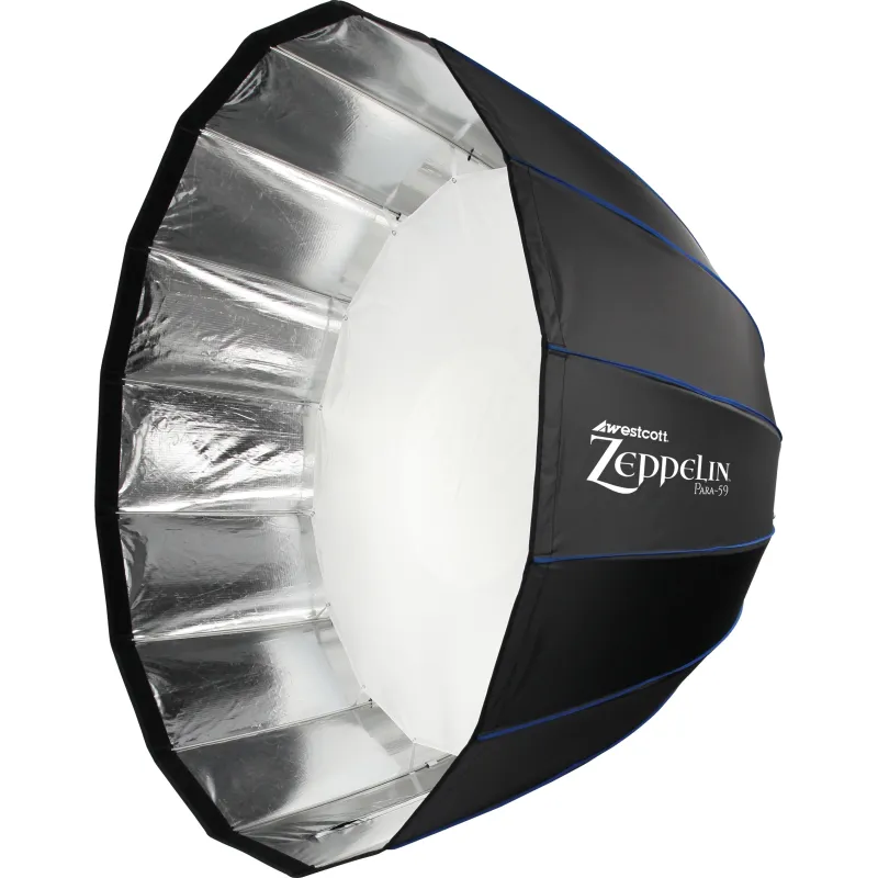The Westcott Zeppelin Para 59 has a deep parabolic construction from which it got its name. This softbox gives a beautiful circular light that is perfect for commercial, model and fashion photography. The light is even and has soft shadows. The construction is of very high quality.