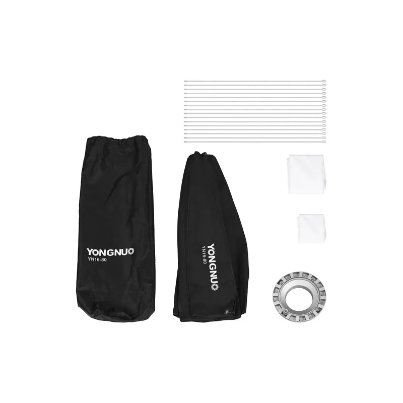 Yongnuo YN16-80 is a high quality hexagonal softbox with a diameter of 80 cm. The softbox is equipped with the popular Bowens mount which is compatible with the majority of studio lamps available on the market. The kit also includes two layers of diffusive cloth and a practical carrying case.