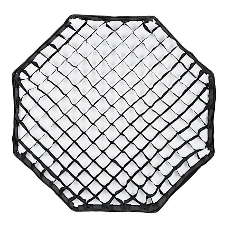 The sheathing is made of a rip-stop nylon fabric, thanks to which the softboxes are very resistant to mechanical damage, and at the same time very light. The interior is finished with a silver screen that evenly distributes the light over the diffusers. In addition to the main diffusing layer, the softbox is equipped with an additional internal diffuser, made of white material with a high light diffusion factor. In the front part, there is a flange for mounting the honeycomb (included).
