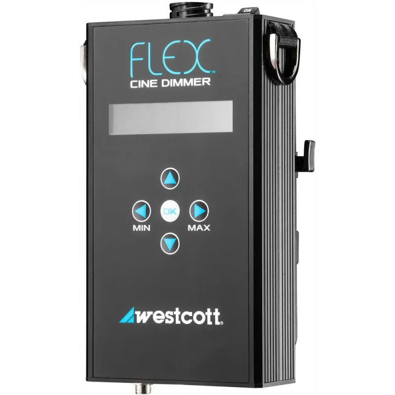 The compact flexible LED dimmer is constructed with a heavy-duty, lightweight aluminum enclosure and can mount to a stand via the built-in 1/4"-20 thread or hung with the removable d-ring shoulder strap.The Flex Cine Dimmer has on-board controls for adjusting light intensity from 0-100% output. When paired with flexible bi-color LED mats, it can be adjusts color temperature from 2800-6000K and offers 4 convenient customizable presets.