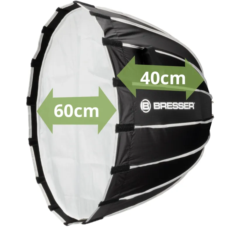 BRESSER Super Quick Parabolic Softbox 60 cm not only impresses with its quick set-up, but also with its durable and high-quality design with stable ribs.