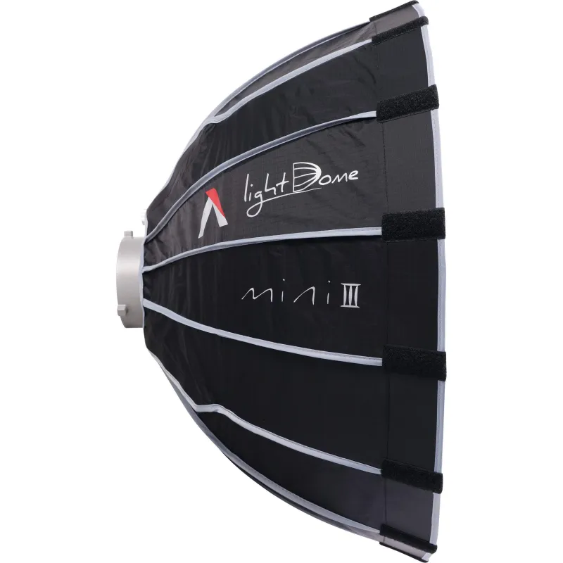 Optimized for lightweight portability, the parabolic, hexadecanol structure of the Light Dome Mini III is fortified by 16 durable steel support rods, which now snap into place with the downward press of its widely-compatible Bowens Mount bracket, saving valuable time on set. Its shape also promotes uniform light output distribution for soft, even light on any subject.