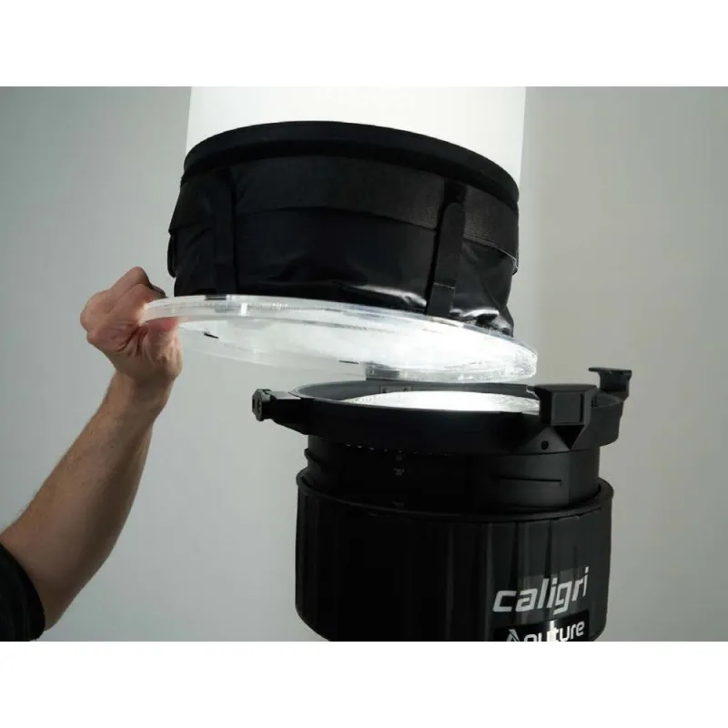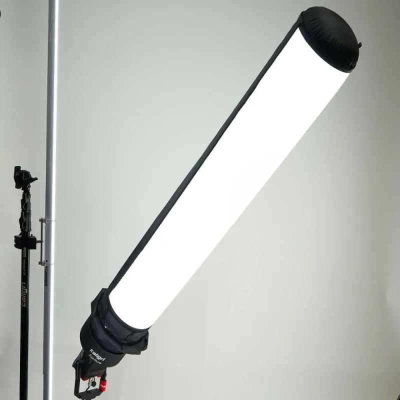 The Airtube 360 L is a tubular softbox for LED headlights and 1x1 panel lights.* Apart from the two end faces, the entire cylinder is made of translucent fabric. The beam angle is therefore 360°. It is mounted using a Fresnel adapter. Just like that The other models from Caligri can be filled with air in just a few seconds. This way you can transform your headlight into a huge light column. If necessary, you can reduce the light beam to 180°.