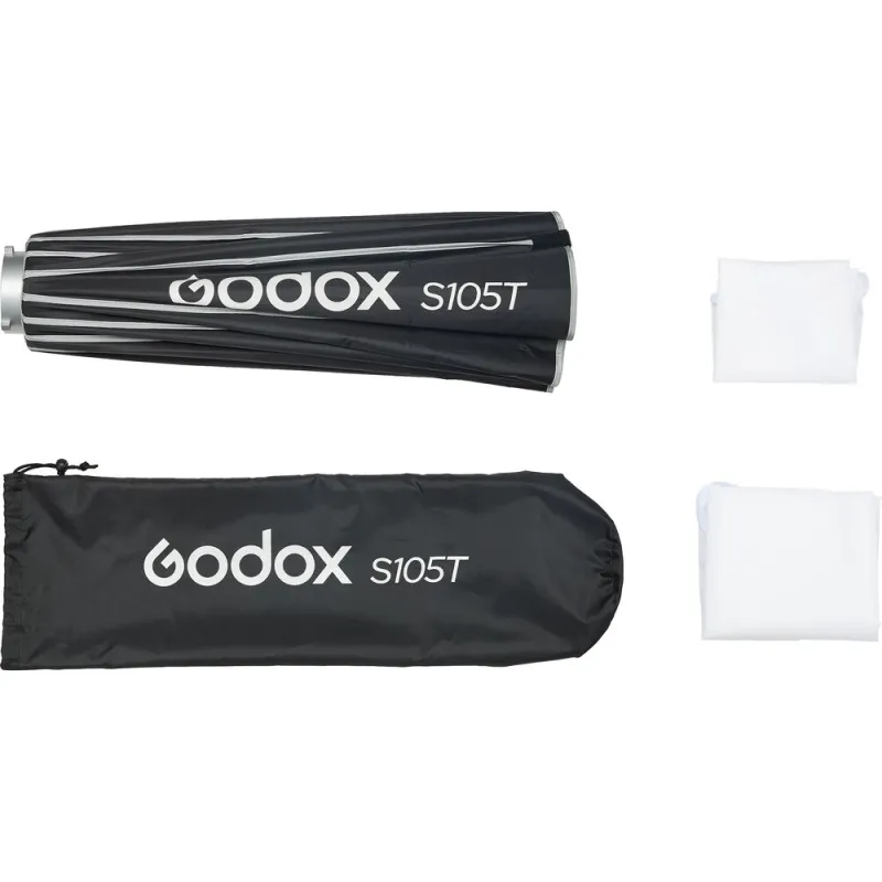 GODOX S105T skėčio softboksas turi skėčio tipo greito išleidimo atidarymo mechanizmą, leidžiantį jį nustatyti ir išardyti per kelias sekundes. Šis universalus modifikatorius sukuria minkštą, tačiau fokusuotą šviesos kokybę. Be dviejų difuzijos sluoksnių, Godox S-W serija taip pat gali būti naudojama su atspindinčia plokšte (parduodama atskirai), leidžiančia ją naudoti kaip sulankstomą grožio indą, taip pat su pasirenkamu medaus korio tinkleliu (parduodamas atskirai), kuris suteikia prieigą prie daugybės apšvietimo stilių su vienu modifikatoriumi. Puikiai tinka portretų, mados, grožio, vestuvių ir renginių fotografijai.
