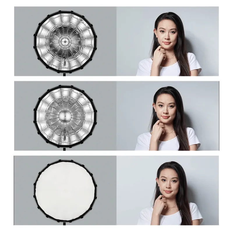 Šį daugiafunkcinį softboksą galima naudoti įvairiais būdais. Su vidiniu ir išoriniu difuzoriumi galite naudoti abu difuzorius, kad gautumėte minkštą tolygų apšvietimą, arba vieną difuzorių, kad gautumėte minkštą apšvietimą su pridėtu kontrastu ir spekuliarumu. Taip pat galite pridėti medaus korio tinklelį (parduodamas atskirai) dar didesnei šviesos sklaidos kontrolei.