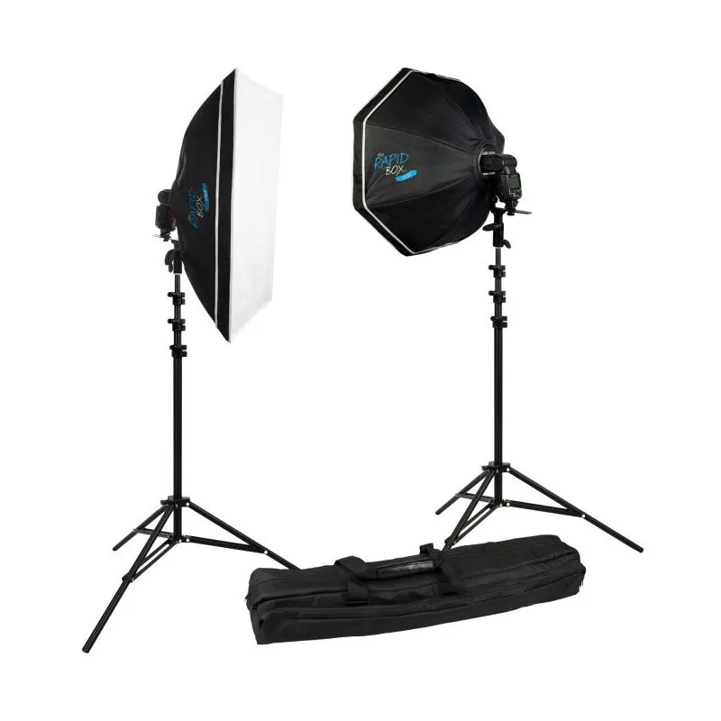 The Westcott Rapid Box Portable Portrait Speedlite Kit is a complete kit for taking portraits on location using two reporters.